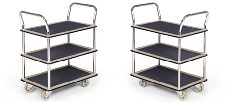 Der selbe Tischwagen wie oben ist auch mit drei ablagen erhältlich. Für Details wie Eigengewicht, Traglast u.a. klicken Sie in den Shop. Hier kommen Sie zum Shop...